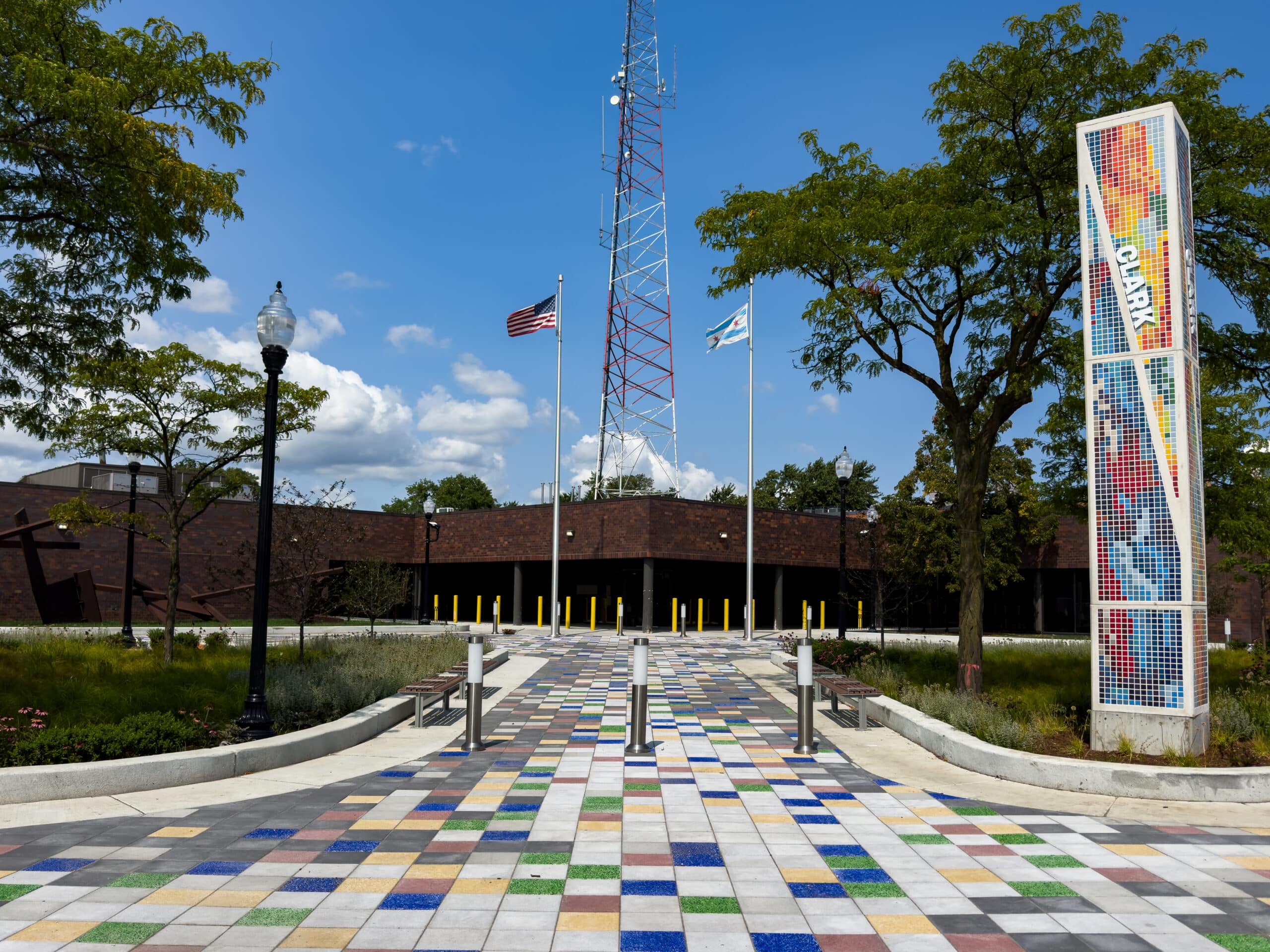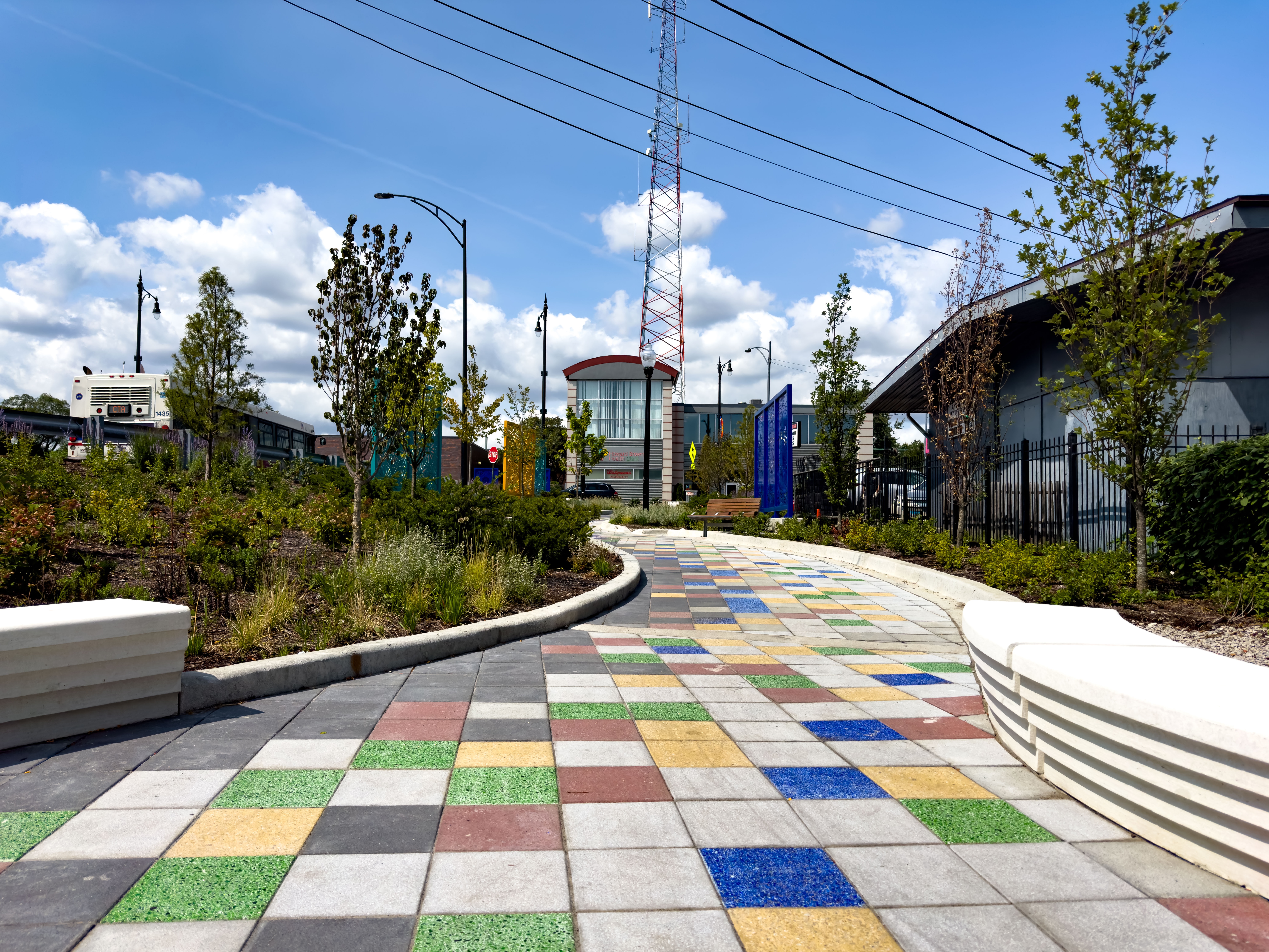 Thorough coordination throughout planning and construction helped deliver: 5,000 lane feet of roadway improvements with new medians; 25,000 SF of plaza replacement; 5,000 SF of reclaimed pedestrian corridor/plaza area from a side street; 14,000 SF of bus terminal lot refurbishment; 7,000 SF of park restoration; 16,000 SF of parking lot reconfiguration; and modernization of IDOT signal infrastructure, including one signal upgrade and one signal replacement as part of the intersection reconfiguration.